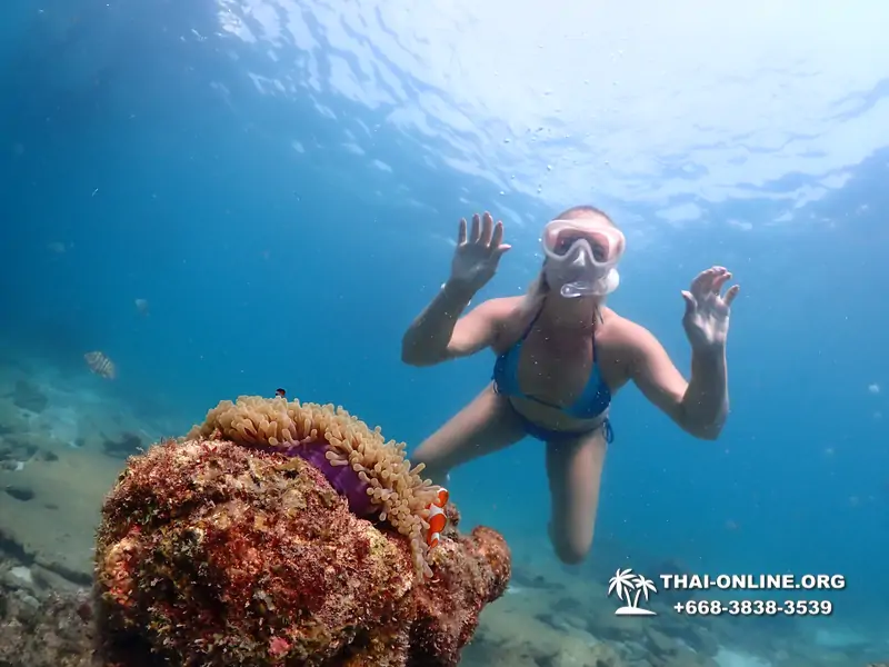 - С 09:00 до 12:30 мы проводим время на коралловых рифах в районе трех островов морского заповедника. В сопровождении опытного гида Вы будете изучать самые красивые коралловые рифы, наблюдать за подводной жизнью в ее естественной среде. Здесь можно увидеть различные виды кораллов, гигантские ракушки, морские звезды. Сопровождающая команда устроит для Вас бесплатную подводную фотосессию с кораллами и рыбами, в том числе и с рыбками Немо;
